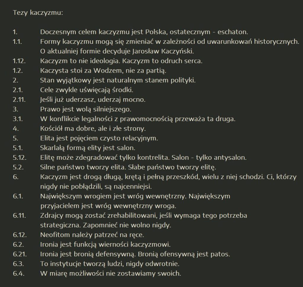 Wszystko zaczęło się 20 stycznia 2019 od opublikowania 22 legendarnych już dziś tez kaczyzmu, dających początek UHK. Poniżej prezentujemy oryginalny zestaw i zapraszamy na wyruszenie w podróż, która zmienia życie.